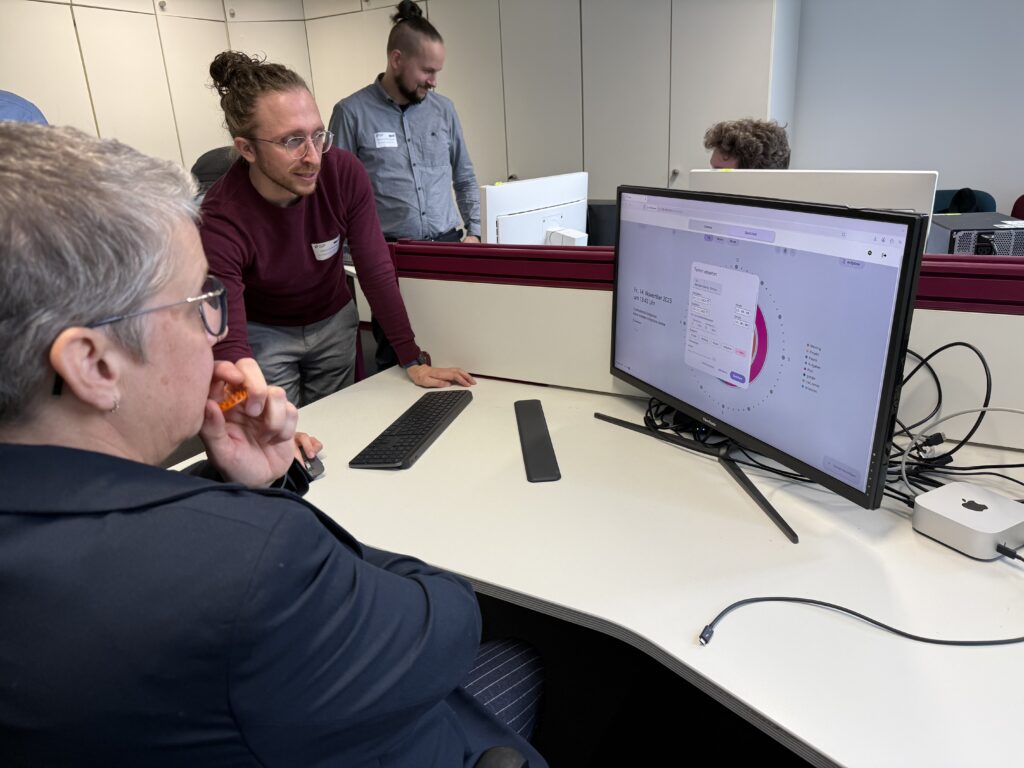 Subsequently, the diverse prototypes developed were presented: The SmartHeadphones enable concentrated work through intelligent noise cancellation whilst maintaining accessibility. The EmailAnalyser stood out particularly – Michael Ranke from autSocial e. V. emphasised that this tool would have helped him most in his professional life. The system can automatically generate task lists from emails, explain non-literal phrases, and create response suggestions. Further developments included the visually appealing SpiraClock for time and task management, the StressBuddy for context detection, as well as the AutiPuck and FidgetKnob as tangible interaction elements. A particular highlight was the announcement of a counselling tool suitable for raising awareness amongst HR managers and executives.